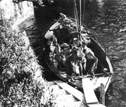 Workmen unloading the colums. |